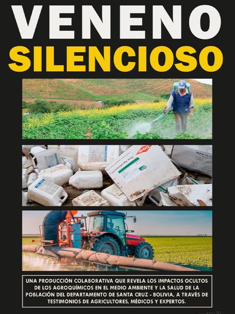 un documentaire bolivien, produit par le Grupo de Trabajo Cambio Climático y Justicia (GTCCJ), organisation partenaire de Comundo au sein de laquelle la journaliste du Jura bernois Marisol Hofmann a travaillé durant trois ans. Ce film, qu'elle co-produit, s'intéresse aux conséquences néfastes de l’usage intensif de pesticides et autres agrochimiques dans la région de Santa Cruz. Il rassemble des témoignages d’agriculteur·trice·s, de professionnel·e·s de la santé et d’expert·e·s, pour dévoiler un véritable fléau : celui des résidus chimiques dans l’eau, l’air et l’alimentation, menaçant la santé des communautés rurales. Dans l'air, dans l'eau comme dans les aliments, l'usage incontrôlé des pesticides a des conséquences sanitaires et environnementales graves