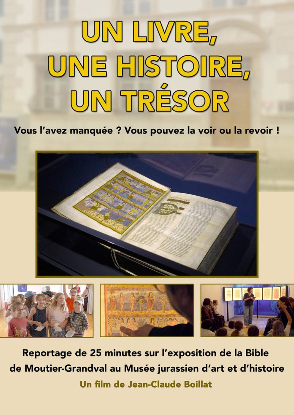 Vous avez manqué l’exposition ? Vous pouvez la voir ou la revoir ! Au rythme d’une intrigue dynamique et soutenue, cette Bible se révèle grâce aux regards d’une multitude d’acteurs : enfants, enseignants, spécialistes de l’enluminure, guides, comédiens et médiateurs culturels. La beauté de cette œuvre se dévoile à travers une communauté humaine émerveillée. La directrice du Musée jurassien d’art et d’histoire présente le travail passionné de son équipe, heureuse d’avoir accueilli plus de 18’000 visiteurs.
